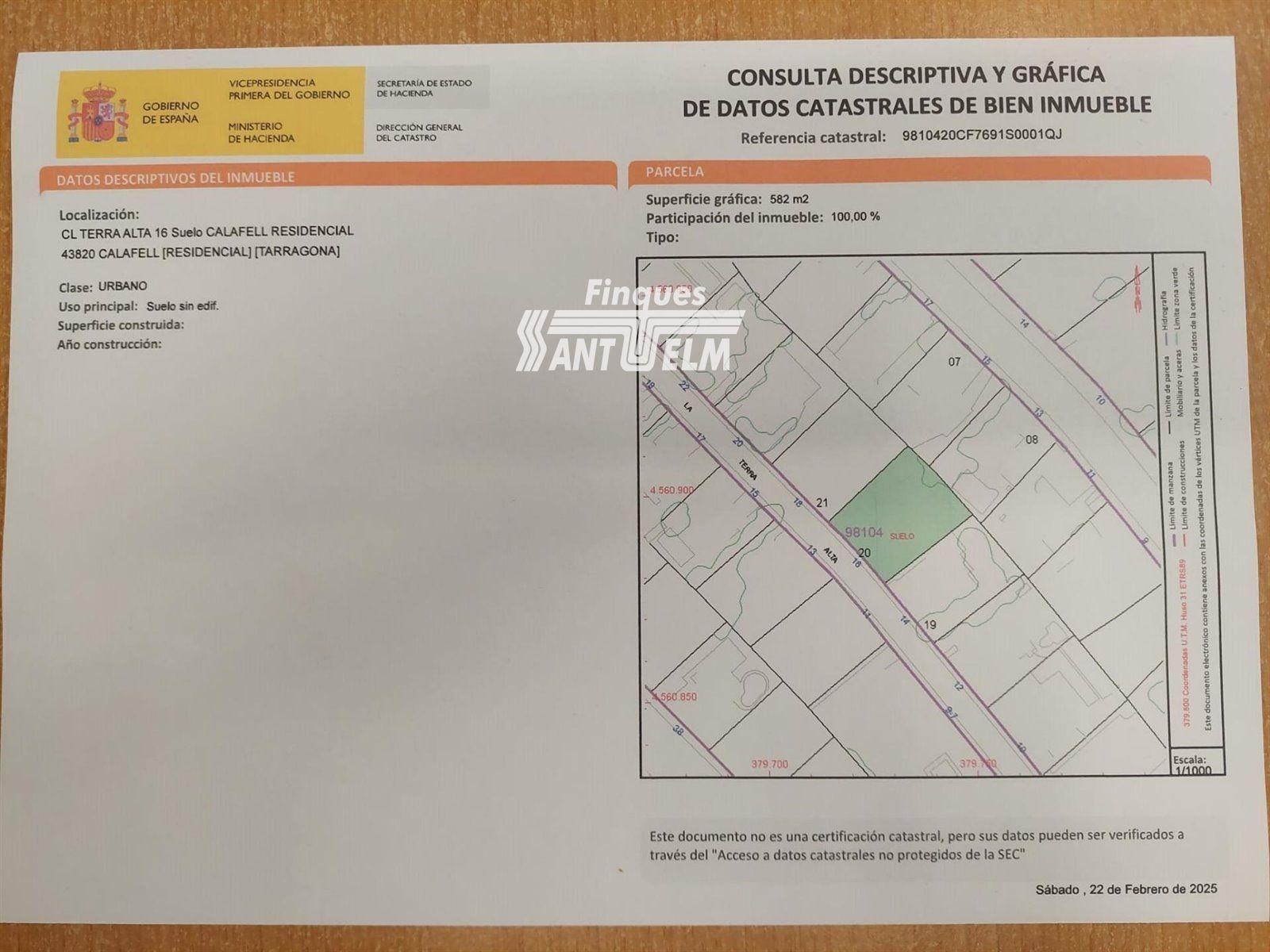 Parcel·la 582 m2