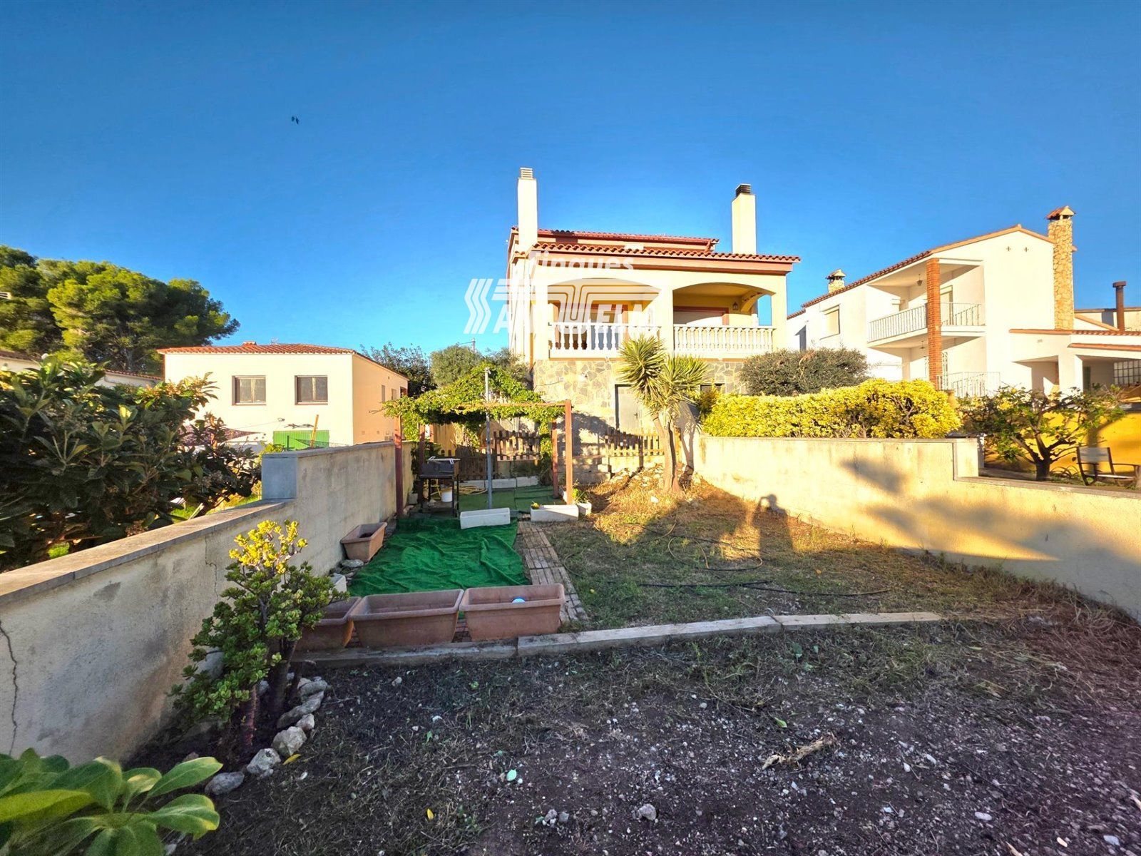 Descubre este impresionante pareado ubicado en la zona tranquila del Castell de Montornés, ideal para quienes buscan un hogar confortable cerca del mar. Con una superficie construida de 179 m² y útil de 122 m², esta propiedad se encuentra en buen estado y ofrece orientación sur, lo que garantiza luminosidad durante todo el día. El inmueble cuenta con dos habitaciones dobles amplias, una de ellas suite, y dos individuales, de ellas una es en planta junto a baño completo. También dispone de tres baños que añaden funcionalidad a los espacios familiares...La cocina es independiente, mide aproximadamente 10m² y está perfectamente equipada para disfrutar momentos inolvidables cocinando. Su salón espacioso (25m²) permite crear ambientes acogedores junto a seres queridos mientras disfruta vistas despejadas desde sus áreas exteriores como la terraza privada (8m²). ..Incluye en la planta sótano garaje para dos coches...En el exterior encontrará una parcela generosa de 265 m² con gran jardin de 60 m2 ideal para relajarse o jugar al aire libre si tiene niños pequeños gracias a las zonas infantiles cercanas dentro urbanización bien mantenida..Además entre sus extras destacan parking privado seguro frente puerta blindada principal ofreciendo tranquilidad total así mismo trastero adicional donde almacenar pertenencias sin preocupaciones adicionales sobre espacio disponible! Localizada solo cinco kilómetros distantes playa más próxima brindándole oportunidad aprovechar actividades recreativas marítimas locales incluyendo deportes acuáticos populares!.Idealmente conectada mediante transporte público accesible autobuses regulares hacia distintos puntos clave alrededor área: colegios reconocidos centros comerciales variados opciones diversión familiar aseguran satisfacción completa residencia soñadora.